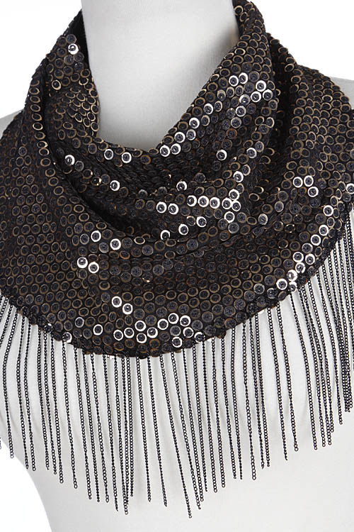 - *Sequin All Over Scarf with Tassel Chain Detail 5JAG