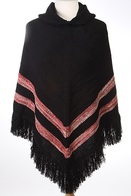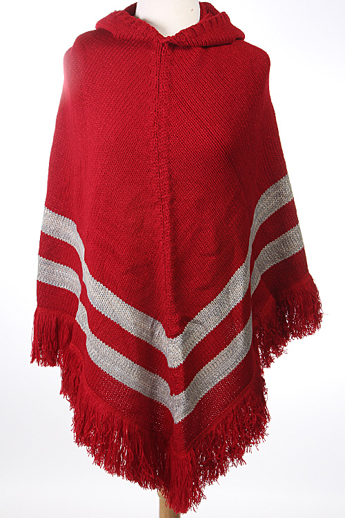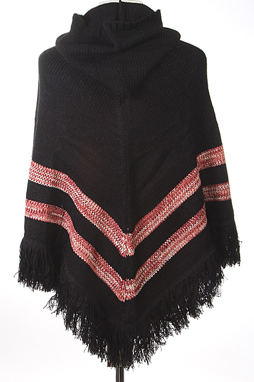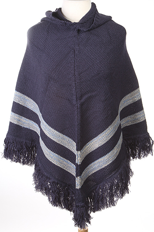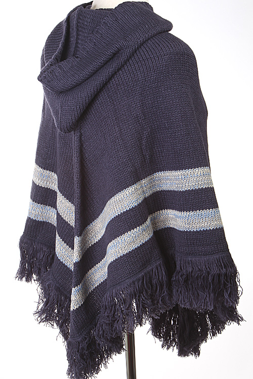 - * Double Chevron Striped Hooded Poncho 4IBJ * 28" approx.