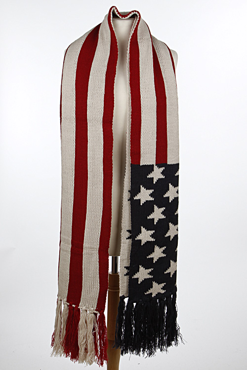 - * American Flag Fringe Drop Long Scarf 5IAB * 15 x 80" approx.
