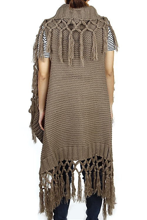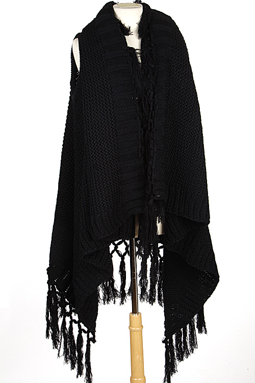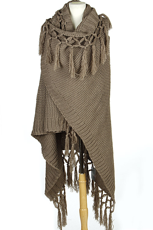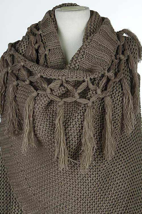 - *Knitted Poncho Scarf with Tassel Knotted Detail 5JCE