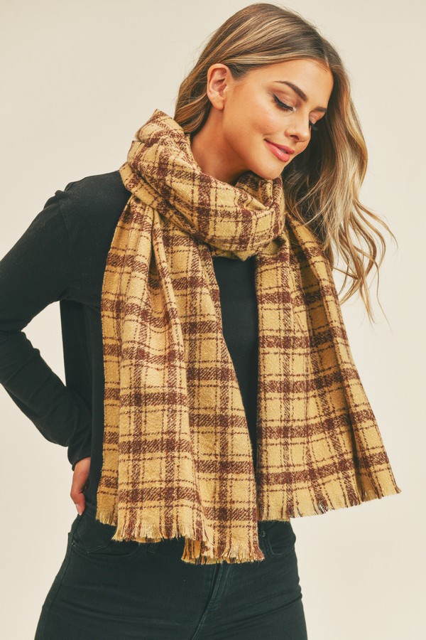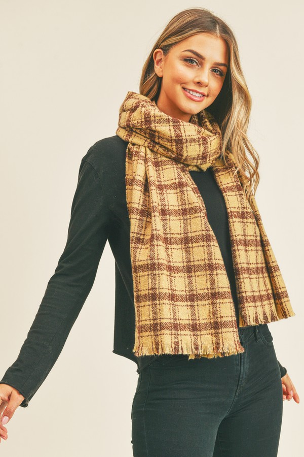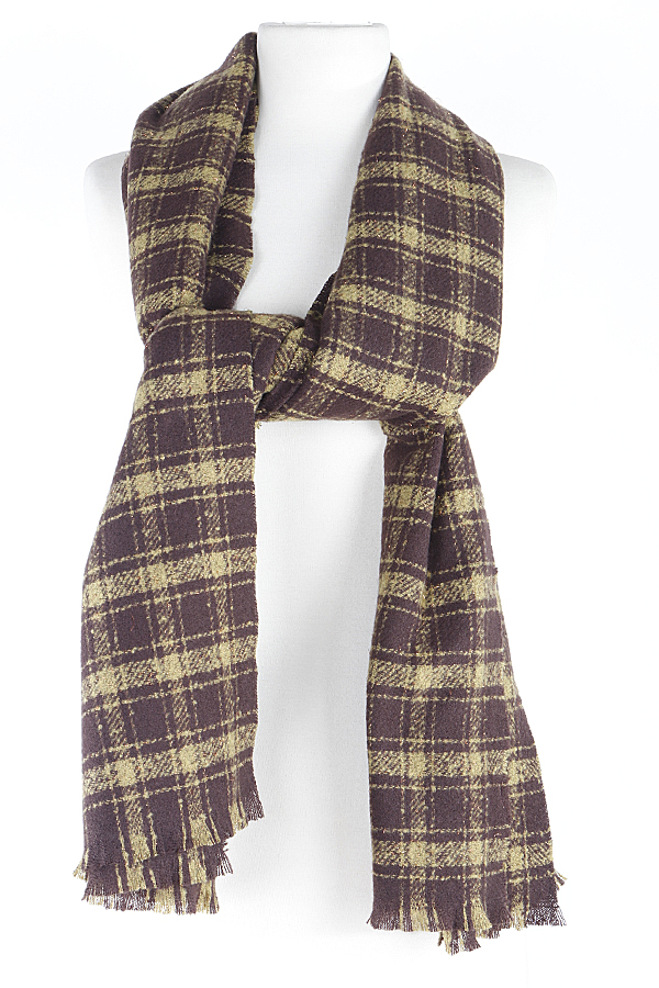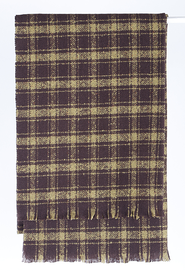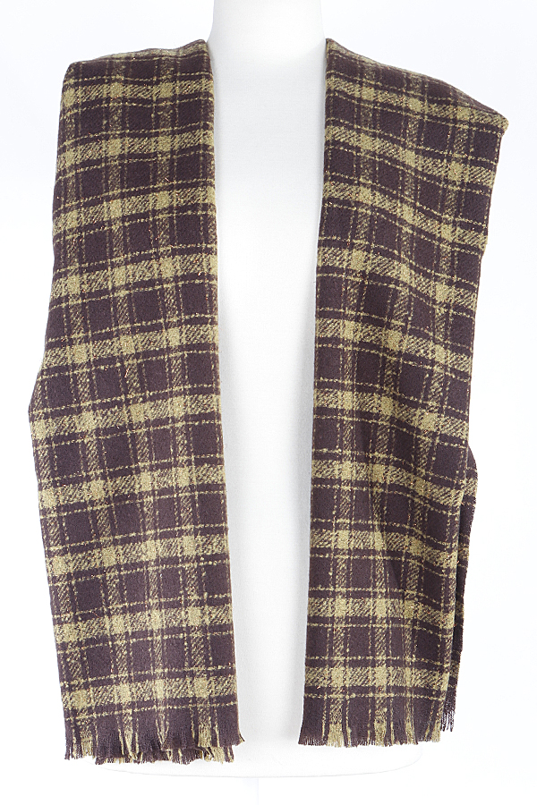 • * This is a Plaid Lurex Oblong Scarf. It features a classic plaid pattern and a fringed design. From H&D Accessories, it can be draped around the neck to add a stylish touch to an outfit, suitable for enhancing the look in various daily or casual situations.