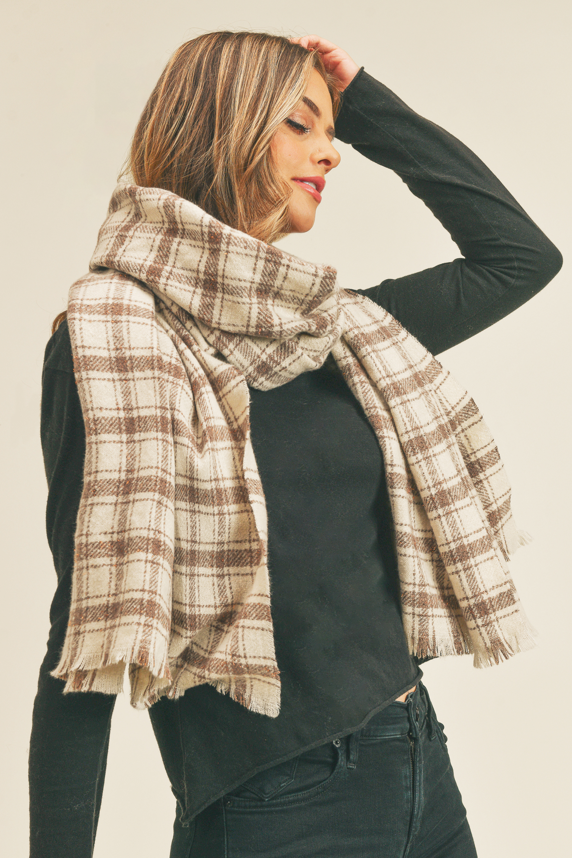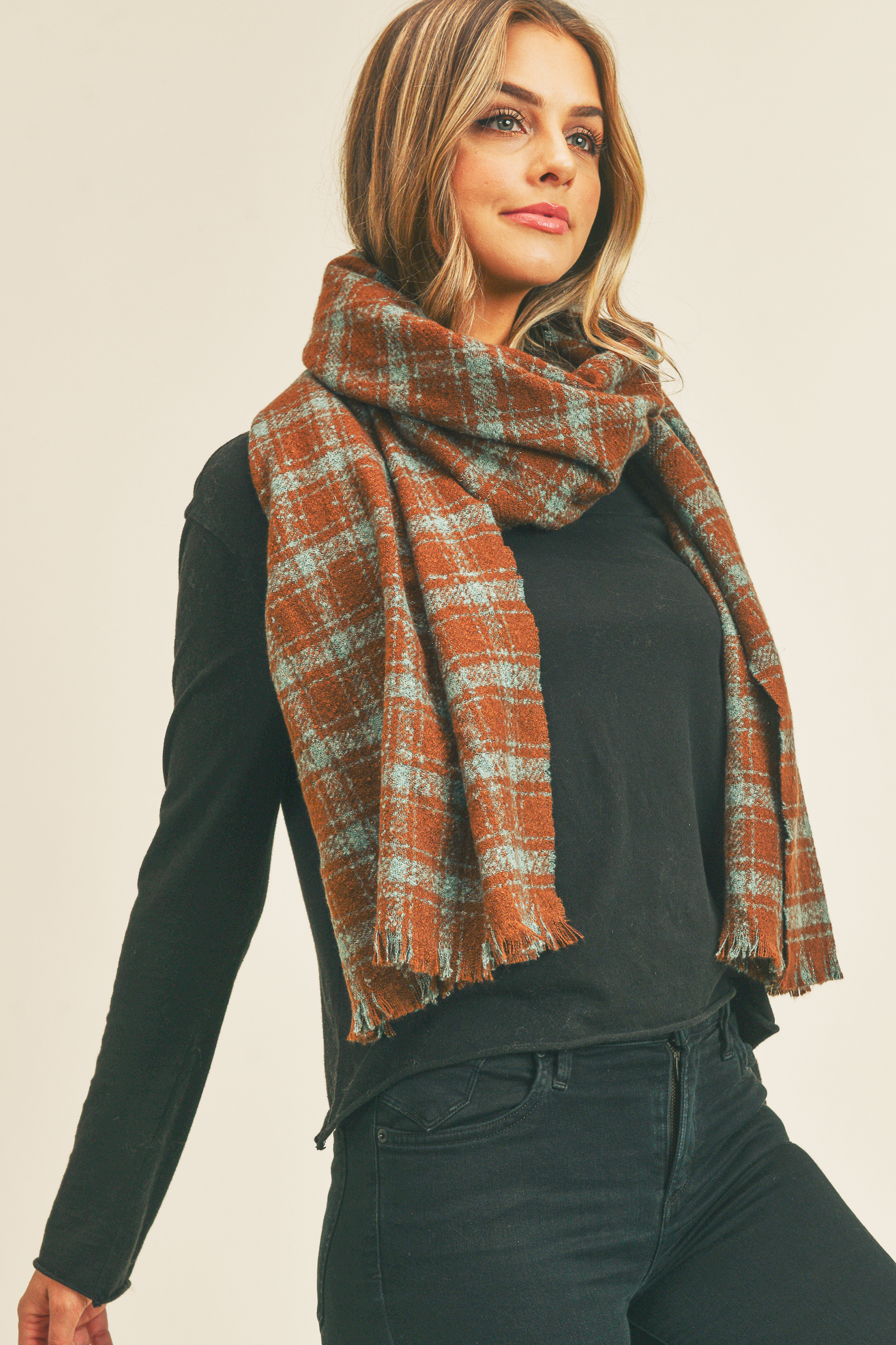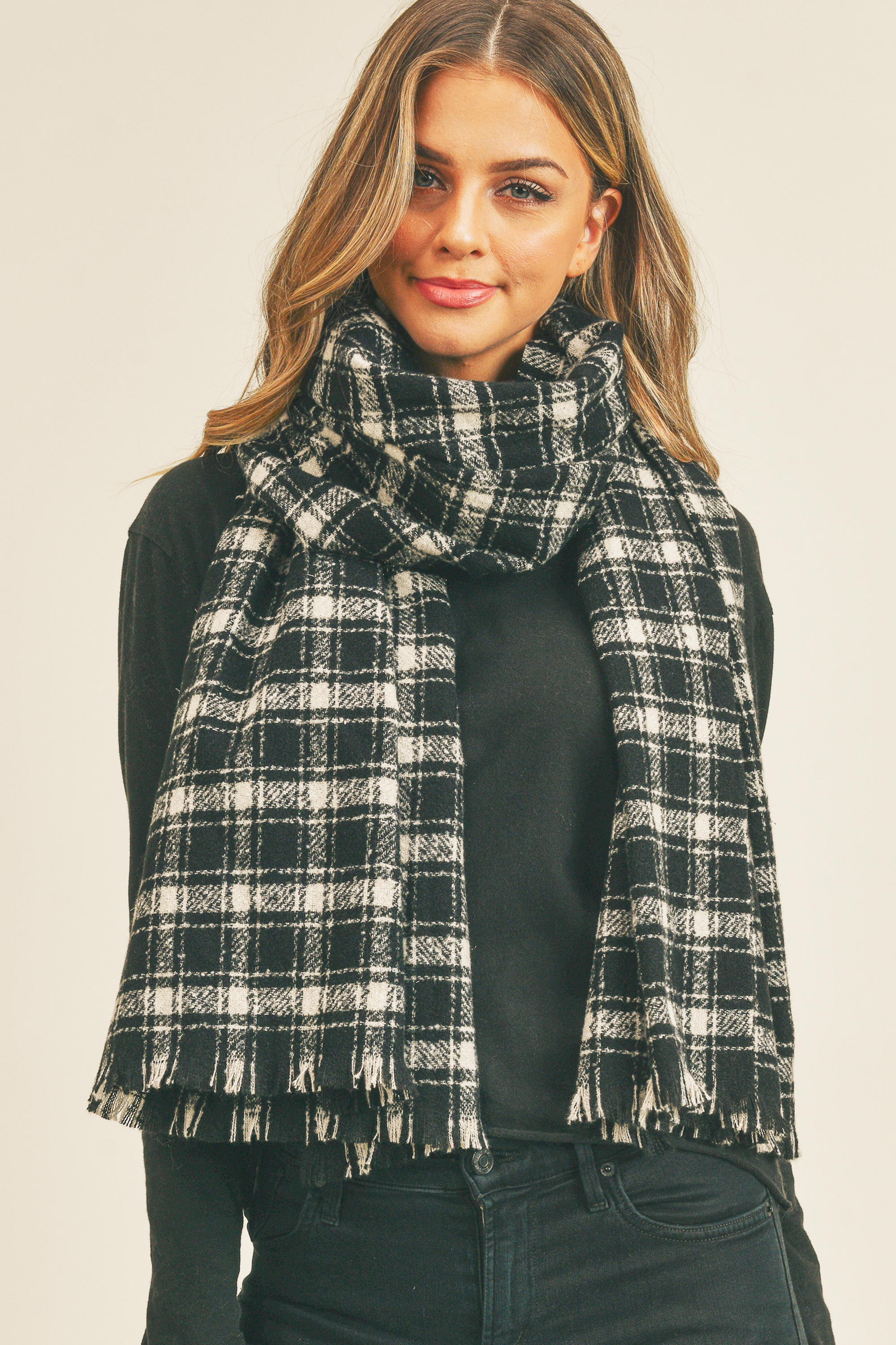• * This is a Plaid Lurex Oblong Scarf. It features a classic plaid pattern and a fringed design. From H&D Accessories, it can be draped around the neck to add a stylish touch to an outfit, suitable for enhancing the look in various daily or casual situations.