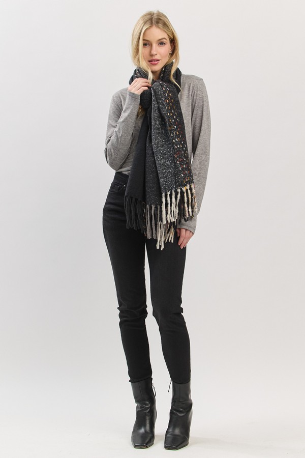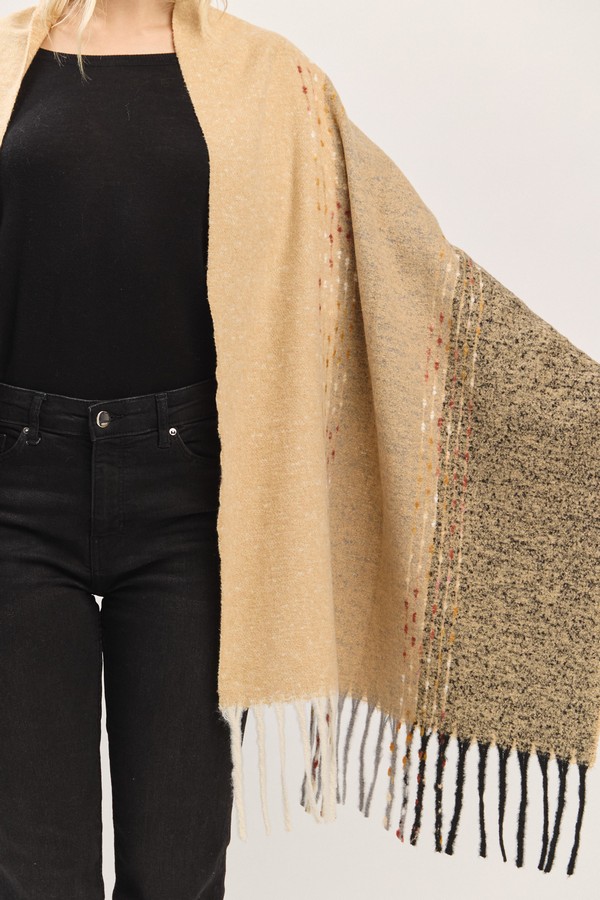 - * The Subtle Stitch Details Fringe Scarf from H&D Accessories is a stylish and cozy accessory. It features delicate stitch work that adds an elegant touch. The scarf is adorned with fringe at the ends, giving it a trendy look. It is perfect for keeping warm during cold days, whether you are going for a walk, running errands, or attending outdoor events.