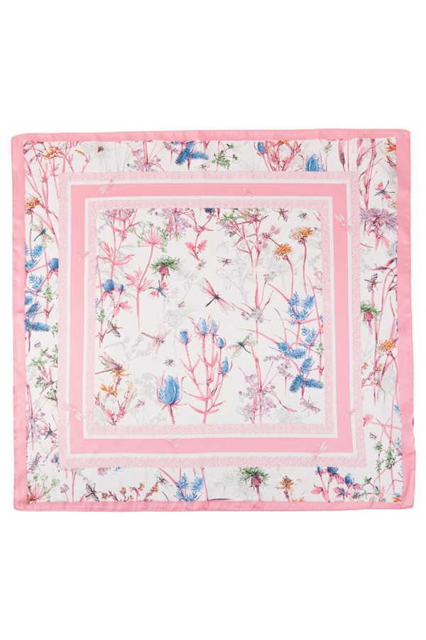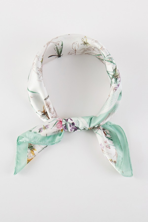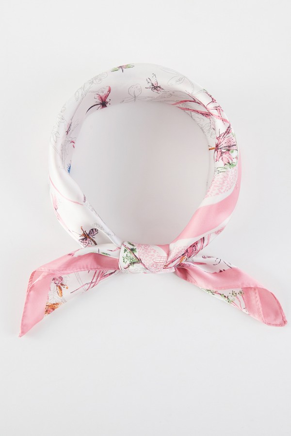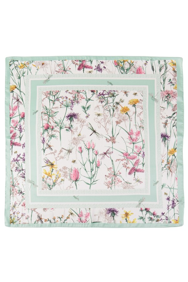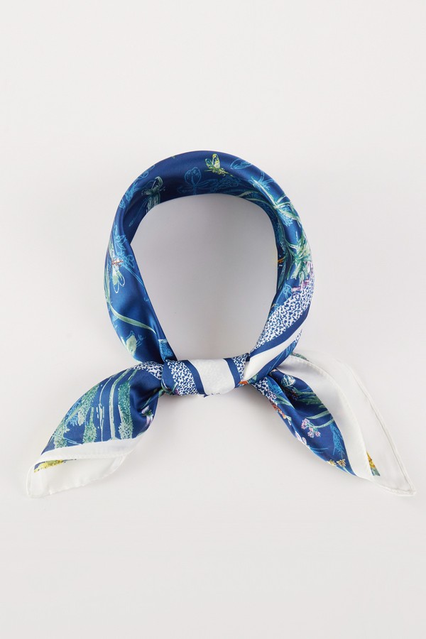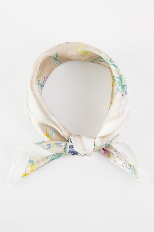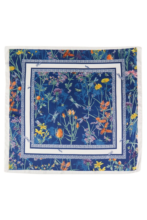 - * This is a Flower Print Bandana from H&D Accessories. It showcases a delicate floral pattern, with various flowers and plants artistically arranged. The bandana has a framed design, presenting an elegant and refined look. It's a charming accessory that can add a touch of grace to different styles.