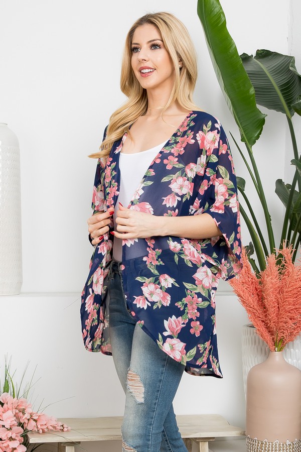 - * FLOWER PRINT KIMONO