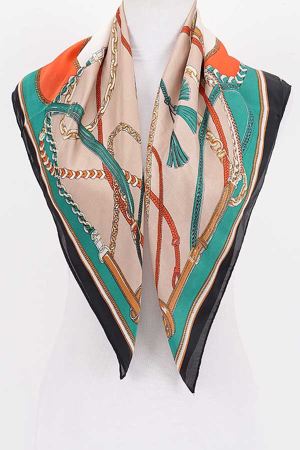 • * This Multi Print Bandana from H&D Accessories showcases an intricate and detailed design. The bandana features a rich array of patterns, including chains and tassels, which are artistically intertwined across its surface. It is crafted with fine workmanship, presenting a sophisticated and stylish look. Ideal for adding a touch of elegance and charm to your outfit, this bandana is a versatile accessory for fashion - conscious individuals.
