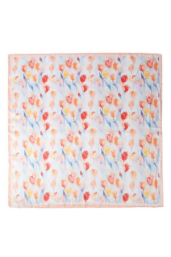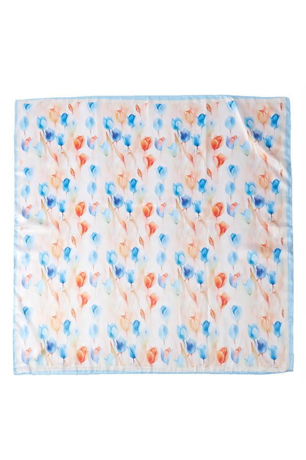 - * This Floral Print Bandana from H&D Accessories features an enchanting pattern of tulips. The bandana is adorned with numerous tulip motifs, each delicately illustrated to capture the essence of these classic flowers. The tulips are arranged in an orderly fashion across the fabric, creating a visually pleasing and harmonious design. The meticulous detailing of the floral prints gives the bandana an elegant and refined appearance, making it a charming accessory for any outfit.