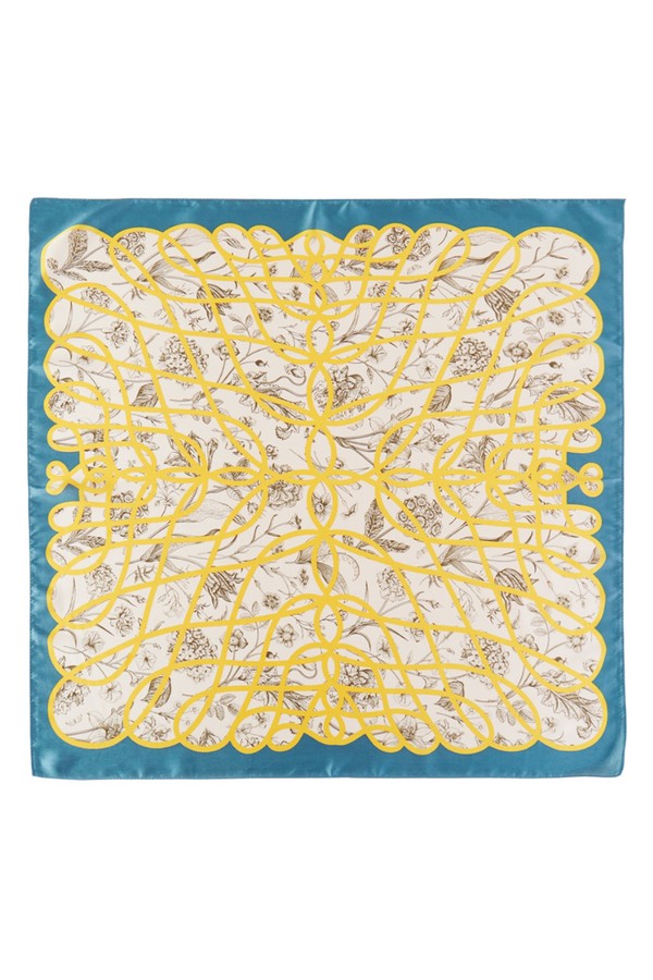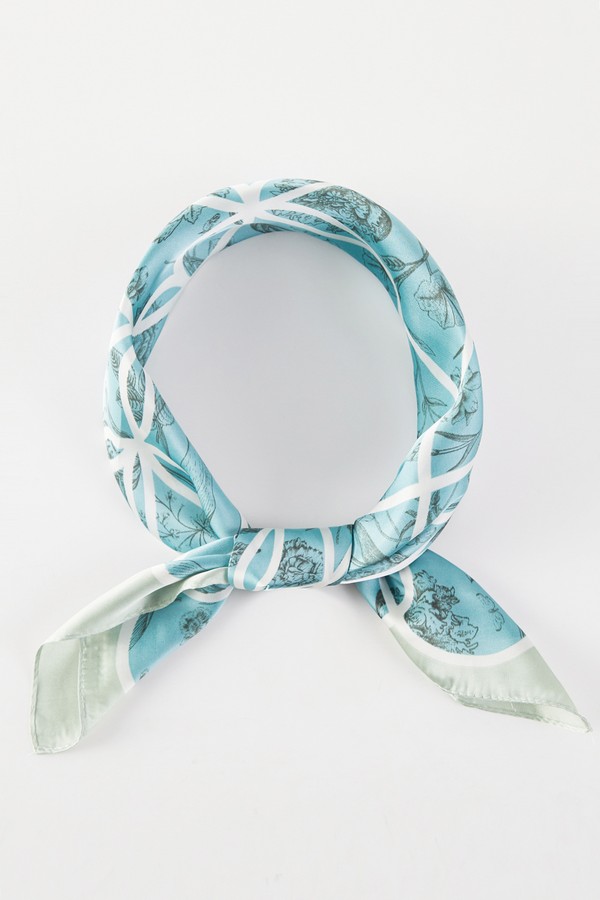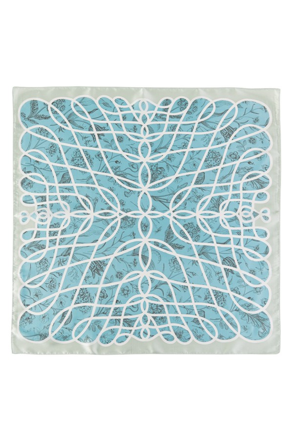 - * This is a Geometric Flower Print Bandana from H&D Accessories. It features an intricate design with interwoven white lines forming a geometric pattern, combined with subtle floral motifs in the background. The overall layout is symmetrical and elaborate, giving the bandana a unique and stylish look.