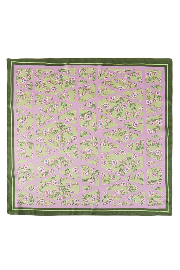 - * This is a Geometric Floral Pattern Bandana from H&D Accessories. It has a square shape with a delicate decorative style. The bandana features regularly - arranged geometric cut - out patterns. Inside these geometric shapes, there are floral prints. The floral motifs are evenly distributed within the geometric frames, creating a harmonious and elegant look. The edge of the bandana is finished with a trim, adding to its overall refined appearance. The pattern layout is well - organized, presenting a stylish combination of geometric and floral elements.