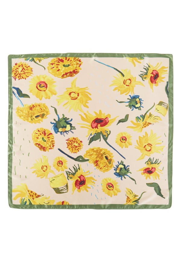 - * This is a SUNFLOWER PATTERN BANDANA from H&D Accessories. It features a design of sunflowers and related elements, with the flowers scattered across the bandana. Alongside the sunflowers, there are additional decorative details like small pots and other botanical - inspired shapes, creating a lively and artistic floral - themed pattern.