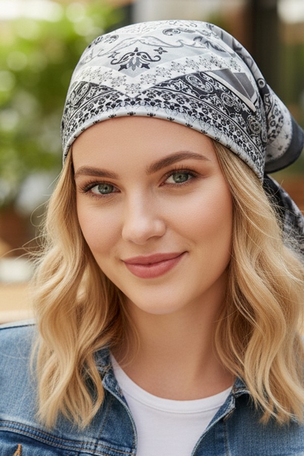 - * This is a Paisley & Arabesque Oriental Bandana from H&D Accessories. It boasts an intricate design with paisley and arabesque elements, creating a rich and artistic look. You can tie it around your handbag to give your bag a unique and elegant touch when going to a cultural exhibition. Or, wear it as a headscarf to add an exotic flair to your outfit while traveling to a historic town, making you stand out with a touch of oriental charm in such scenarios.