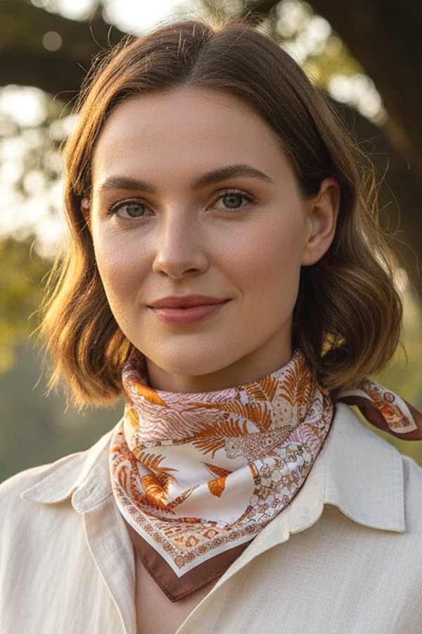 • * This is a Geometric Pattern Bandana from H&D Accessories. It showcases a combination of geometric shapes along with elements like plants and animals, resulting in a vivid and intricate design. You can tie it around your neck to add a touch of uniqueness to your outfit when going for a casual walk in the park. Or, use it as a headwrap to keep your hair in place while exploring a bustling street market, making you stand out with its distinctive pattern in such lively scenarios.