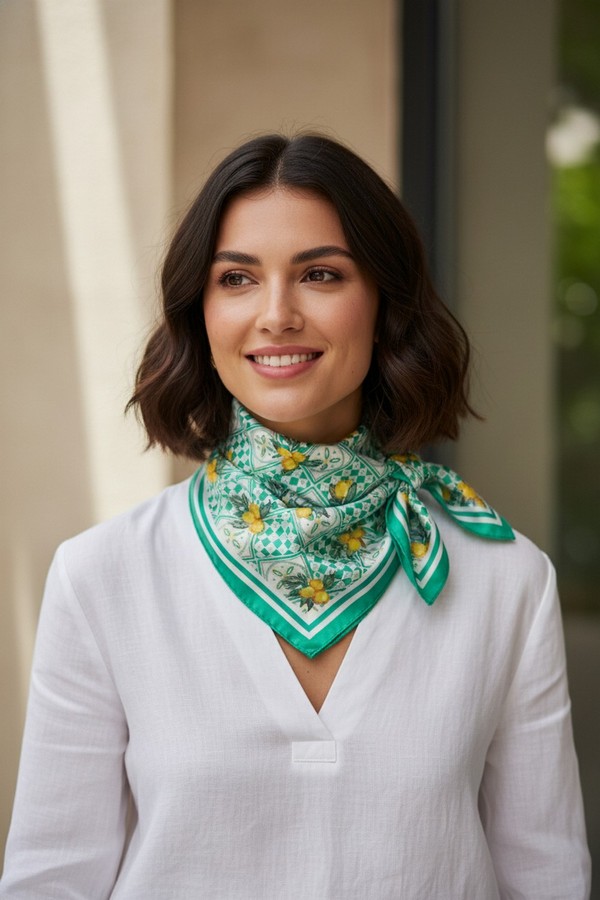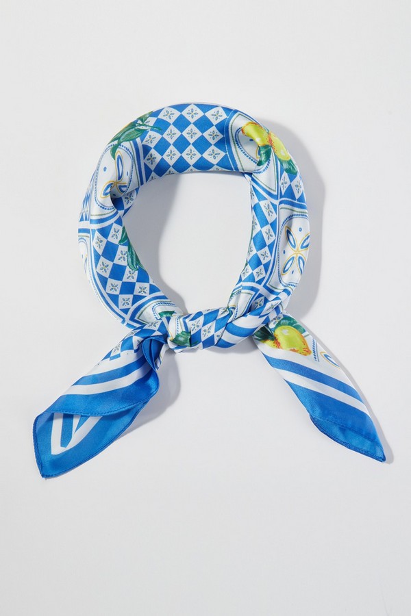 - * This Mediterranean Mosaic Print Bandana from H&D Accessories features an intricate blend of Mosaic and fresh fruit motifs, framed by a sharp border, and made with a soft, lightweight fabric. It can be tied around the neck to add a bright, vacation-ready touch to a linen shirt and shorts for a farmers’ market visit, or worn as a headscarf to keep hair shaded during a beach day. Its compact, portable design also makes it easy to tuck into a bag, ready to elevate any warm-weather outfit with a sunny, Mediterranean-inspired flair.