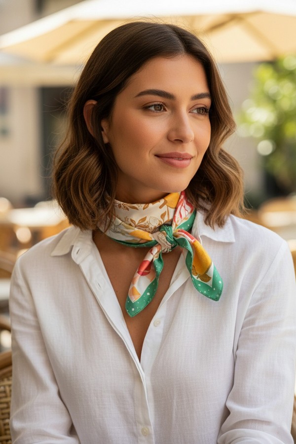 - * This Seaside Feast Print Bandana from H&D Accessories features a vibrant mix of coastal motifs, fresh fruit, and playful illustrated details, framed by a bright border and made with a soft, lightweight fabric. It can be tied around the neck to add a cheerful, vacation-ready touch to a linen shirt and shorts for a beachside lunch, or worn as a headscarf to keep hair shaded during a day of exploring a coastal town. Its compact, portable design also makes it easy to tuck into a bag, ready to elevate any warm-weather outfit with a lively, seaside-inspired flair.