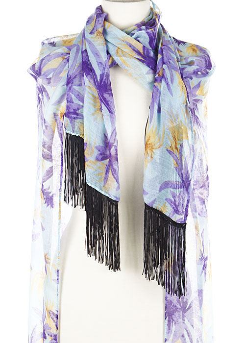 - * Purple Lavender Floral Print Sheer Shawl 5FAF * 36 x 68" approx.