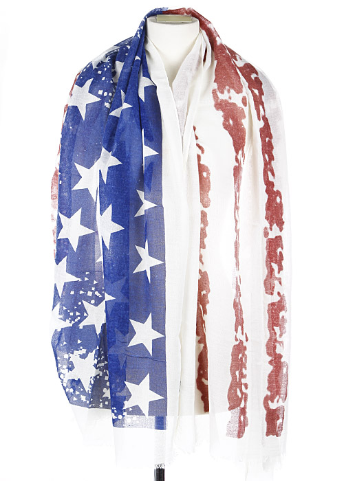 - * Patriotic American Flag Painted Scarf 5FAF * 34 x 68" approx.