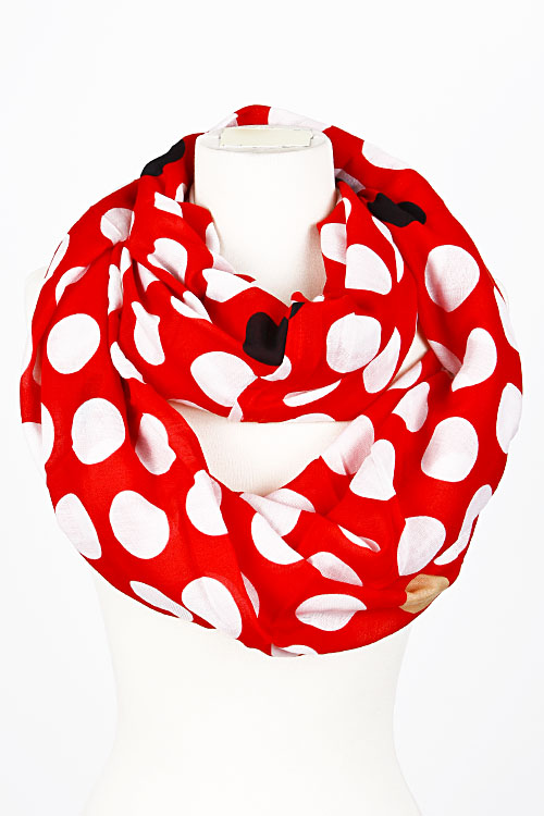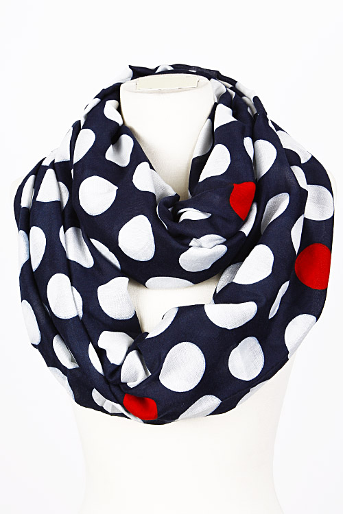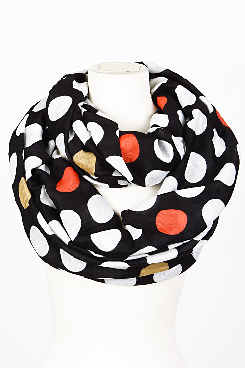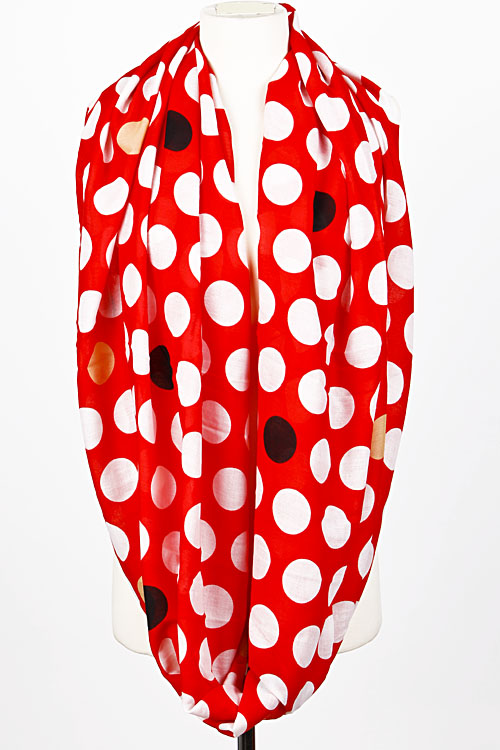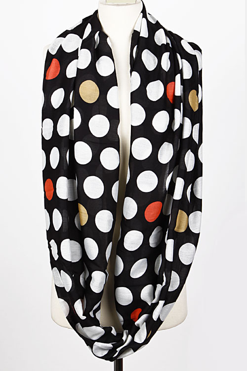 - * White Polka Dot Infinity Scarf 5BBASCARF * 70 x 38" approx.
