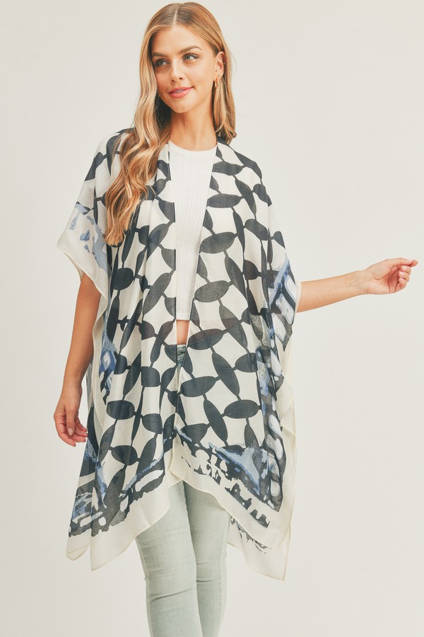 - * OMBREE FRONT AND GEOMETRIC BACK PRINT KIMONO