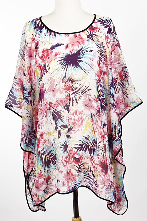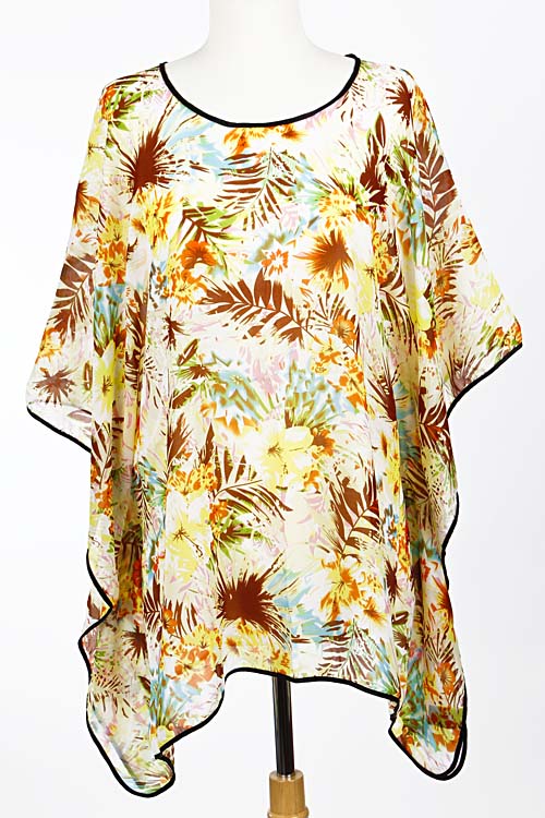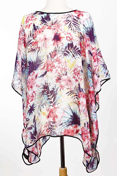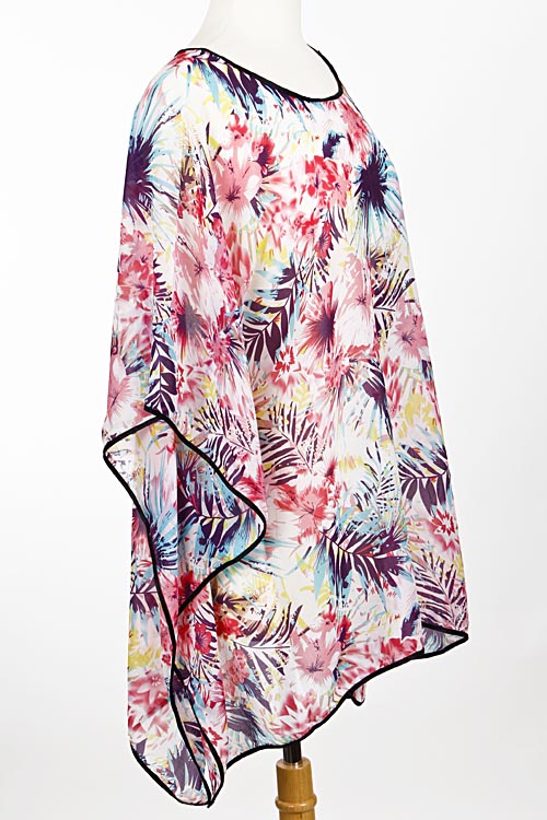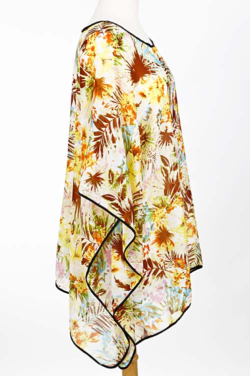 - * Round Neck Flower Garden Print Poncho 5BBJ * 39 x 27" approx.