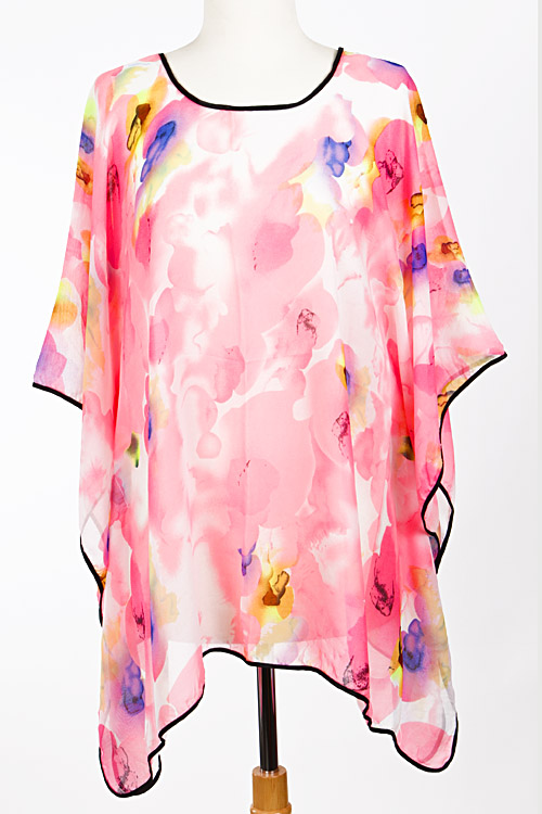 • * Dreamy Flower Printed Sheer Poncho 5BBJ * 39 x 27" approx.