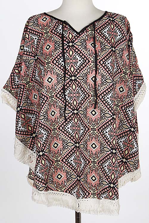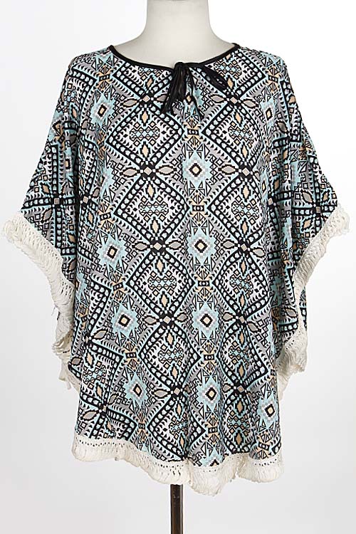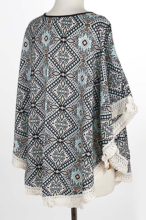 - *Poncho With Diamond Design And Unique Fringes 6BAI