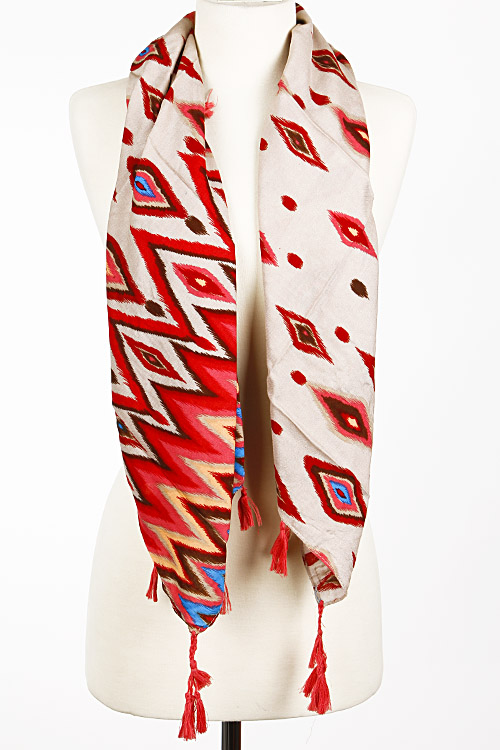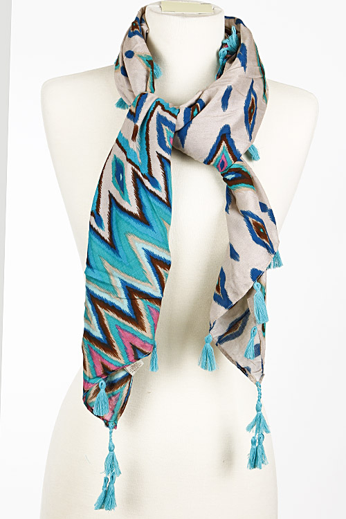 - * Diamond Chevron Print Tassel Scarf 5BBJ * 35 x 39.5" approx.