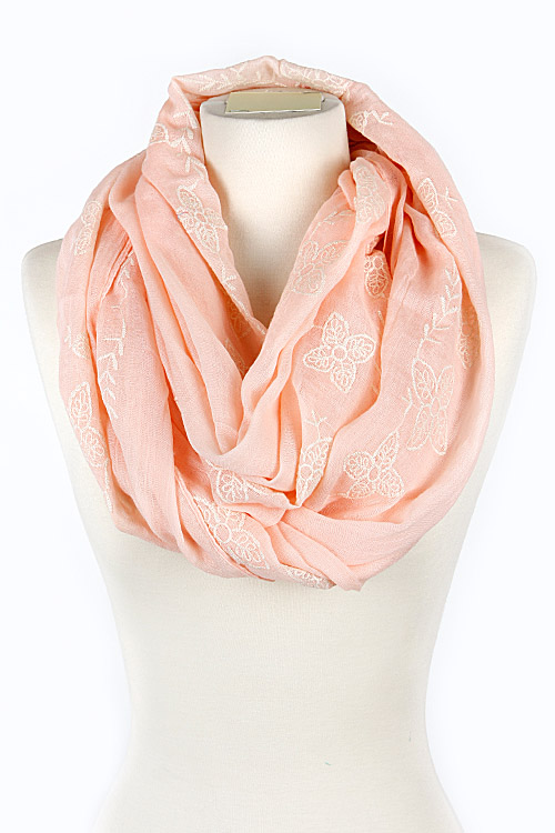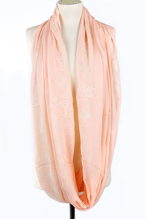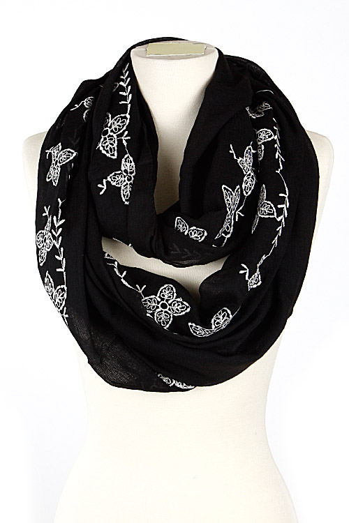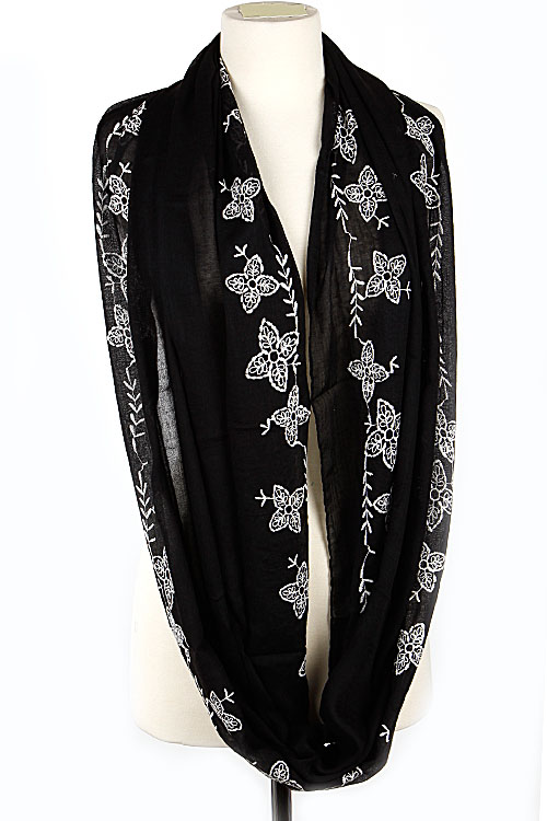 - * Flower Embroidered Solid Infinity Scarf 5DAF * 67 x 27" approx.