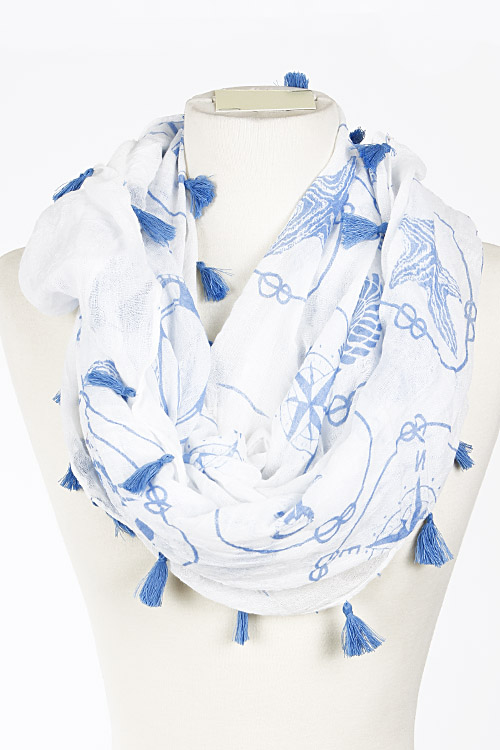 - * Sea Shore Charm Printed Infinity Scarf 5BBJ * 68 x 28" approx.