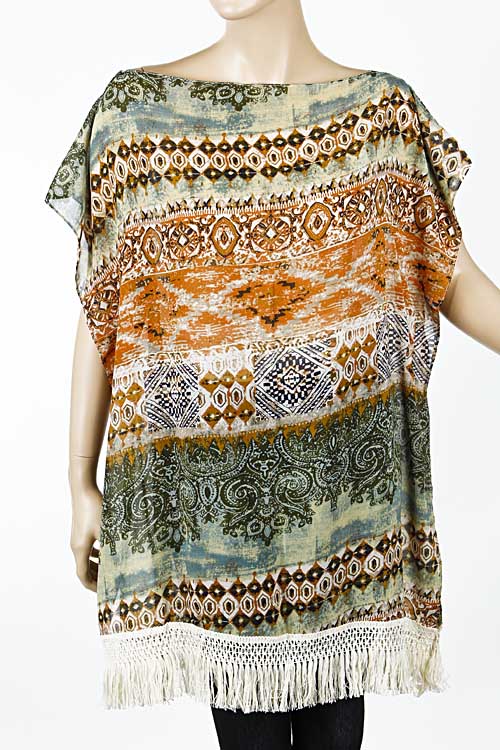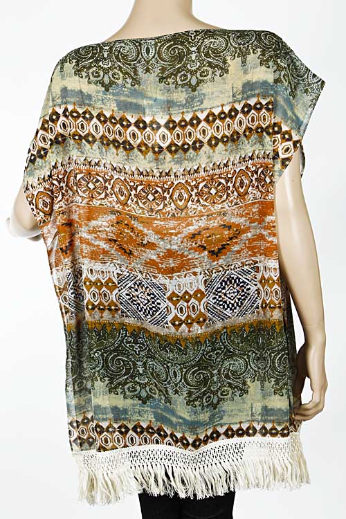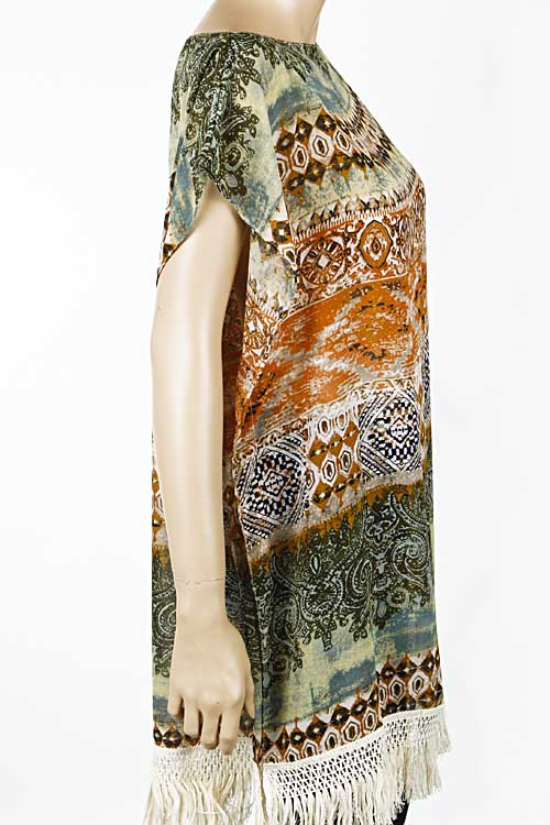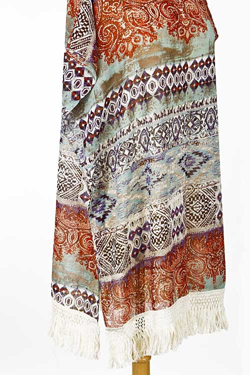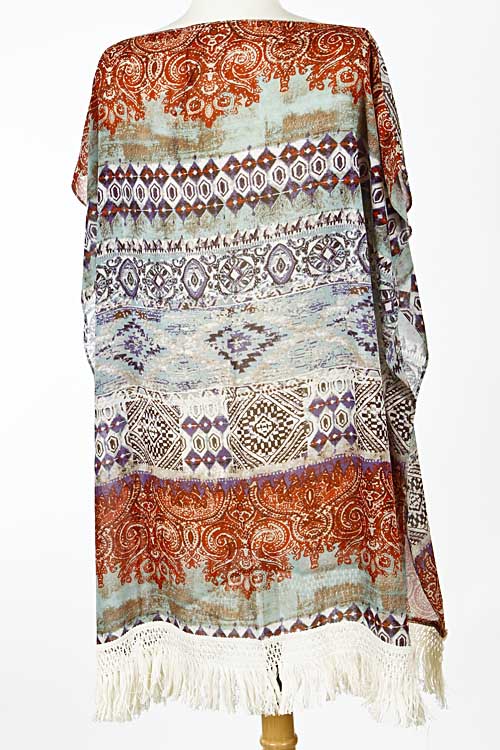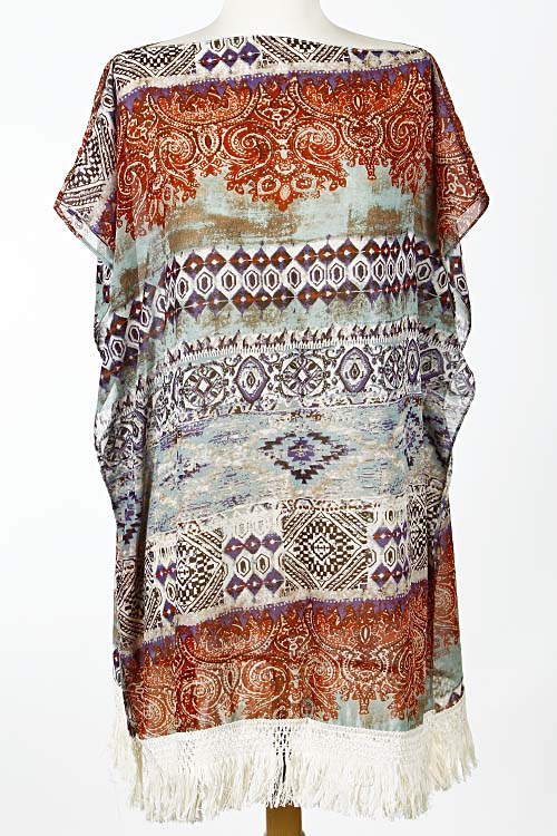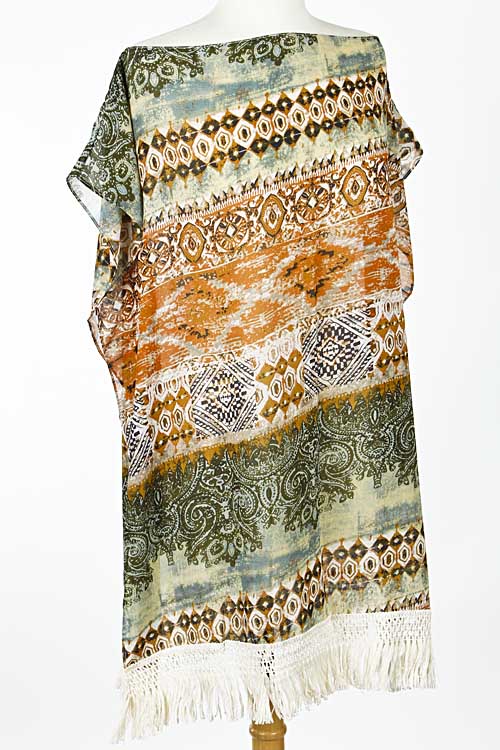 - * Antique Vintage Print Fringed Poncho 5BBJ * 56 x 28" approx.