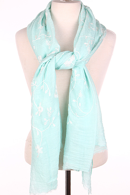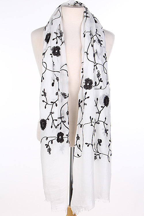 - * Flower Embroidered Spring Scarf 5ABFSCARF2 * 72 x 33" approx.