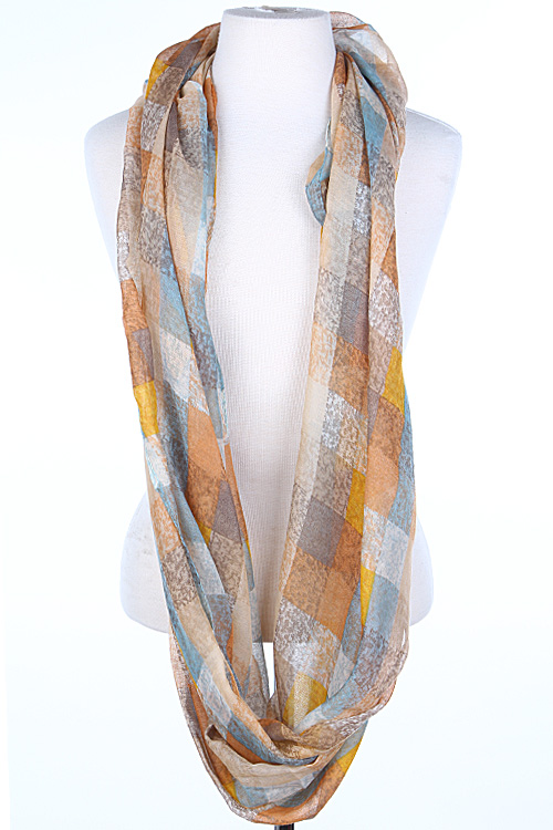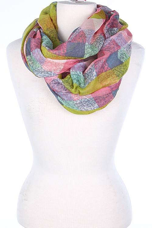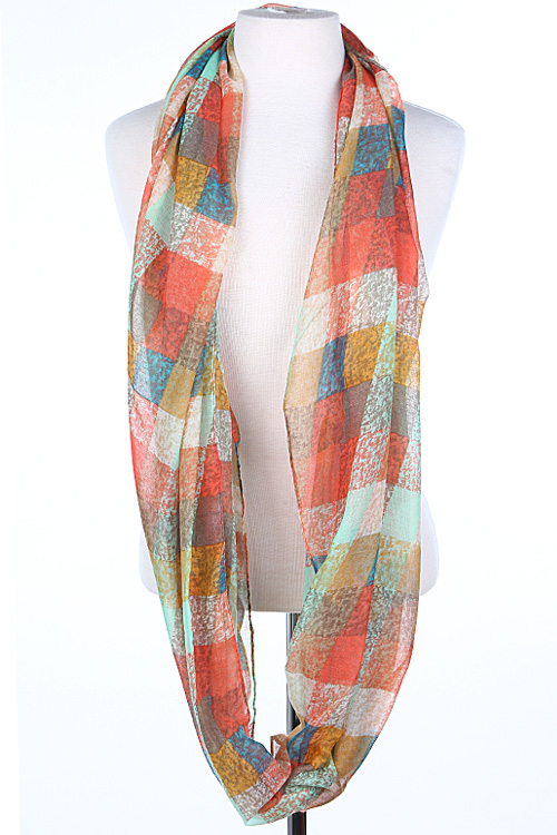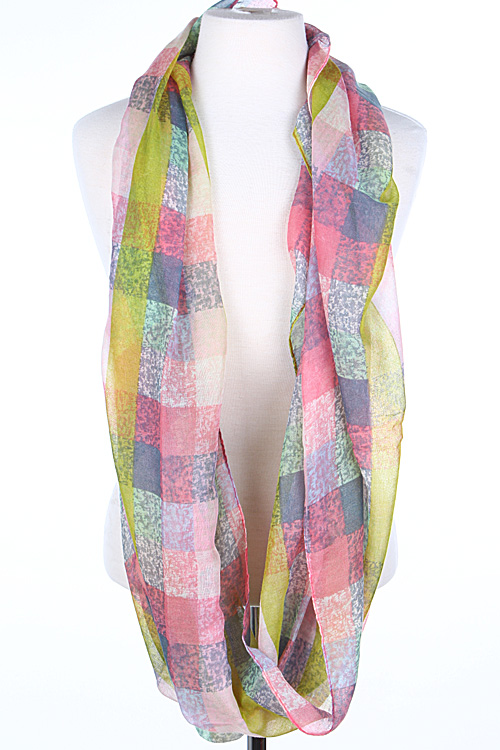 • * Multicolor Checkered Infinity Scarf 5ABFSCARF1 * 72 x 35" approx.