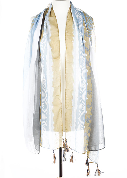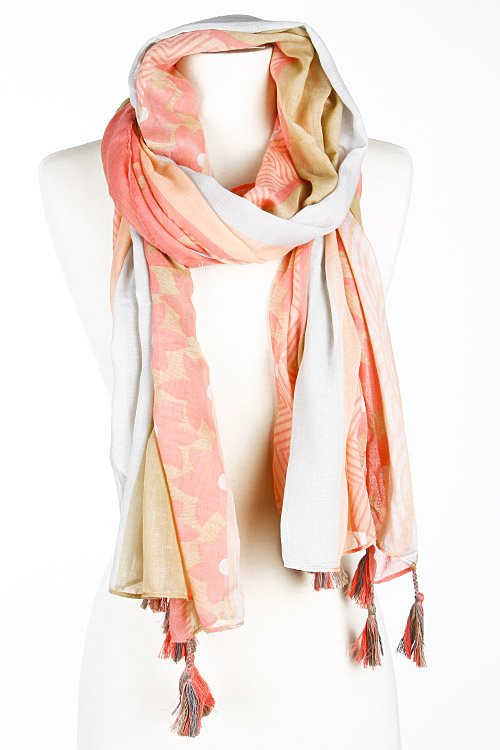 - * Floral Color Block Pattern Print Tassel Scarf 5FAF * 34 x 72" approx.