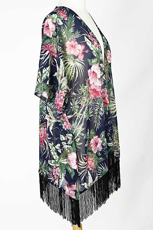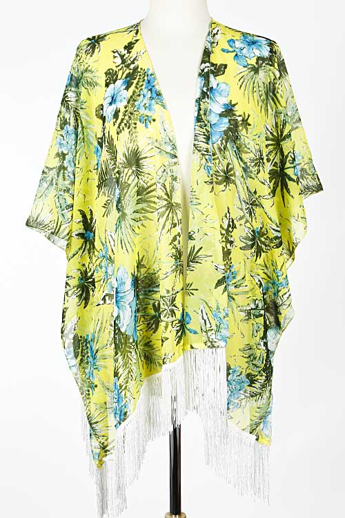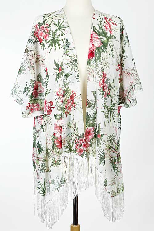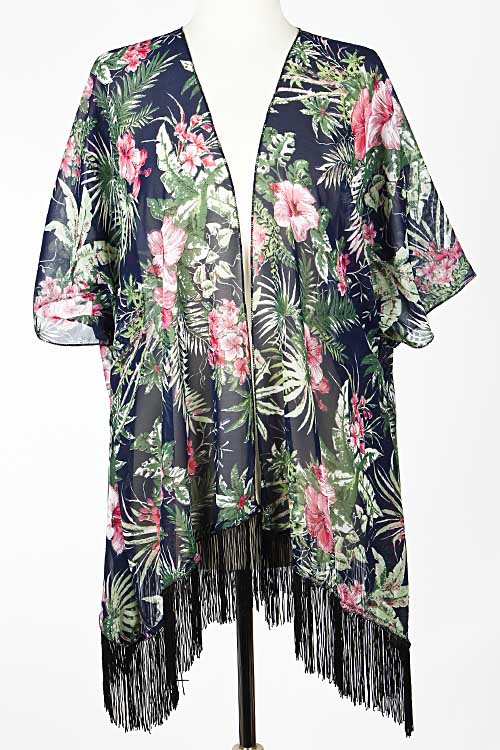 - * Flower Garden Print Fringe Shawl 5BBJ * 38 x 50" approx.