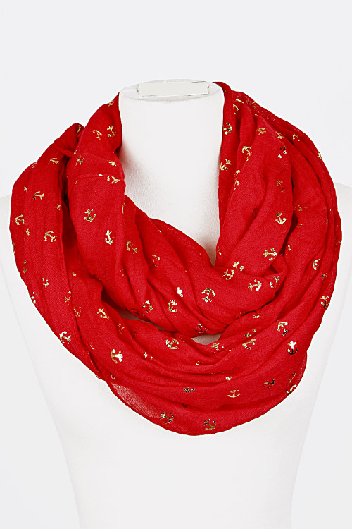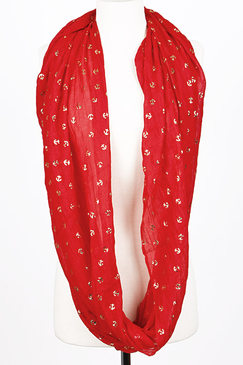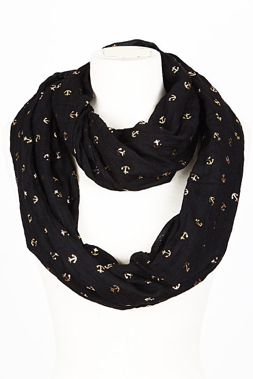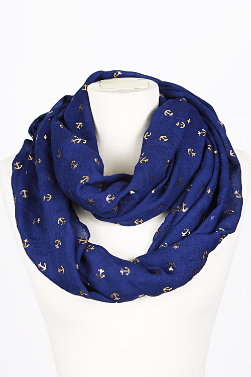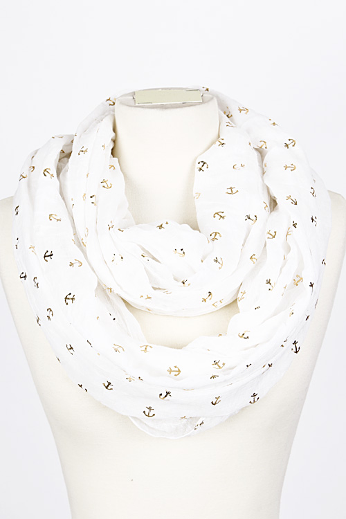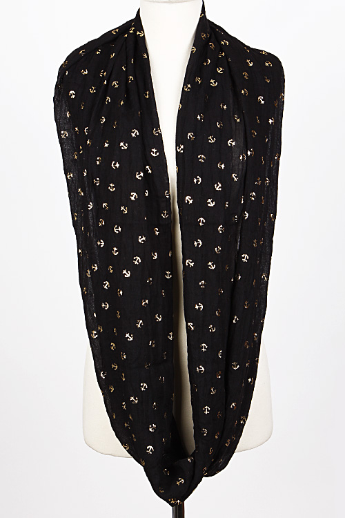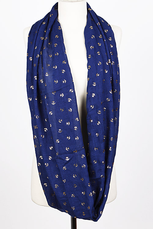 - * Golden Anchor Print Infinity Scarf 5BBASCARF * 66 x 27" approx.