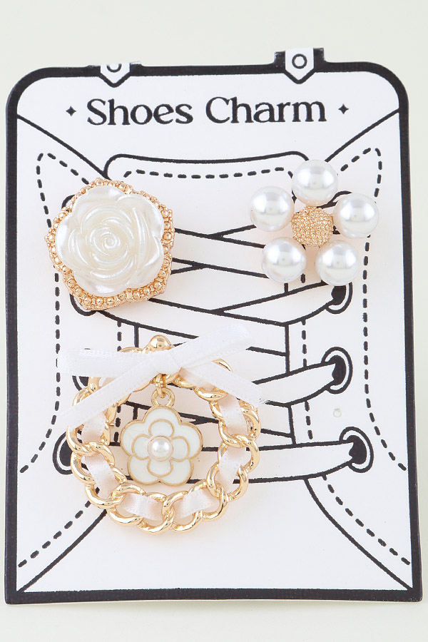 - * This is a set of delicate accessories. It includes various decorative pieces like a circular - chained one with a flower motif, a pearl - clustered flower - shaped piece, and several fasteners. It is the Multi Luxury Flower Shoes Charm, From H&D Accessories, featuring intricate flower - related designs and charming details.