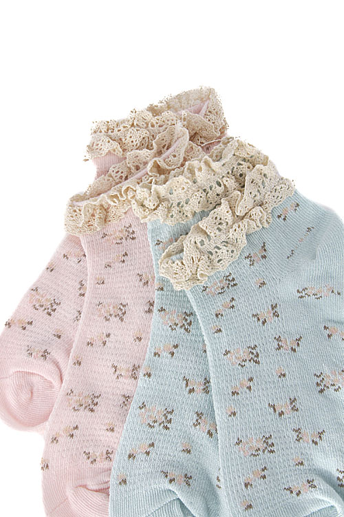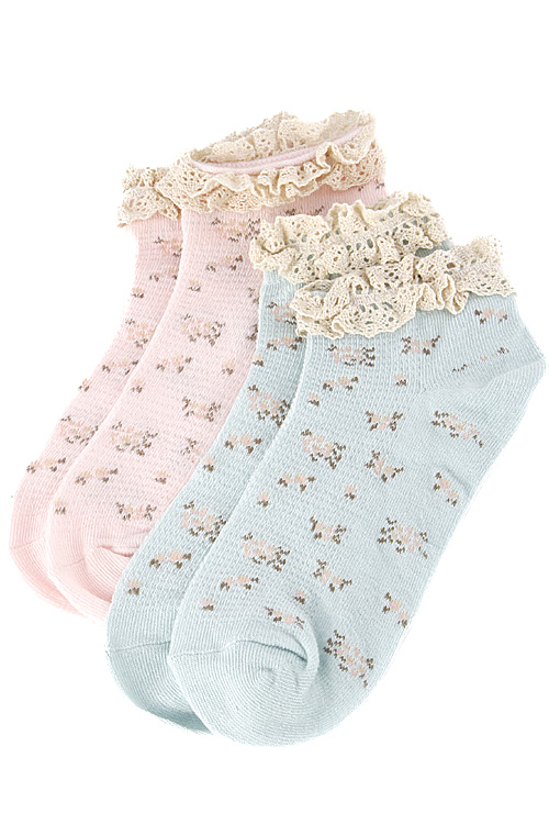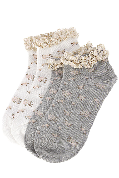 • * Flower Print Lace Detailed Double Ankle Sock 5CCH * 3 x 3" approx.