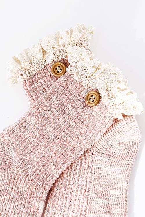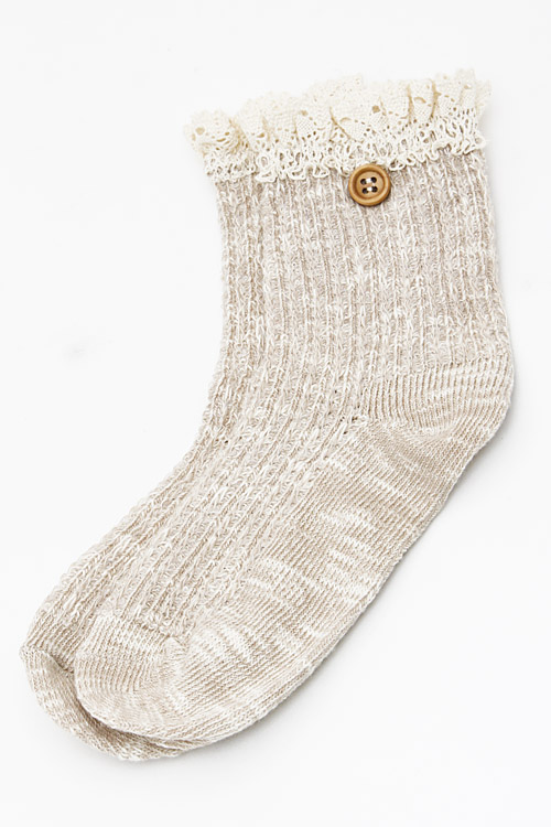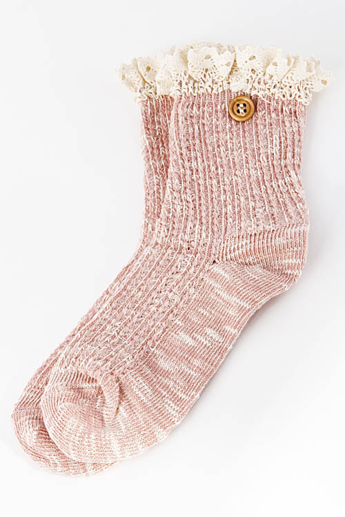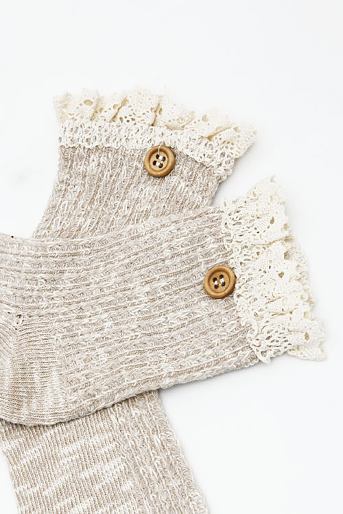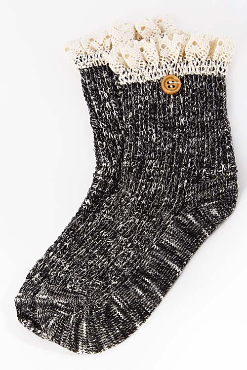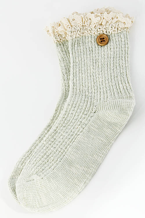 - * Wood Buttoned Lace Sewn Midway Socks 5BBJ * 6 x 5.5" approx.