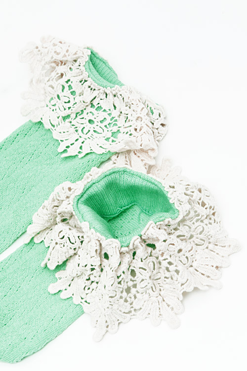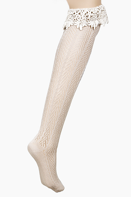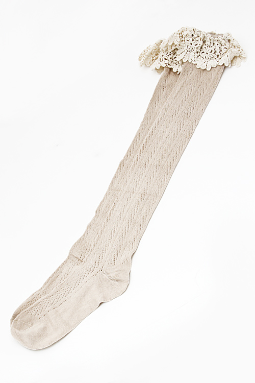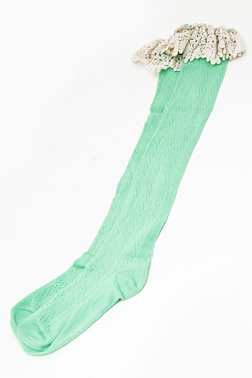 - * Stripe Detail Sewn Solid Lace Long Socks 5CAC * 3 x 19" approx.