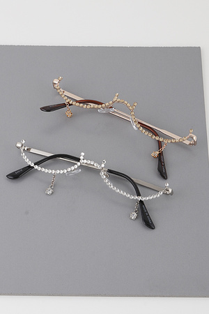 Rhinestone Tear Drop Half Framed Oval Glasses