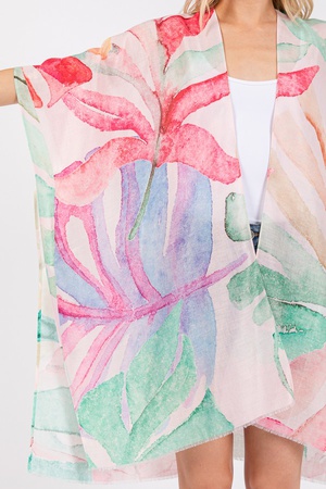 TWO TONES TRIM ABSTRACT PRINT SILKY FEEL KIMONO.