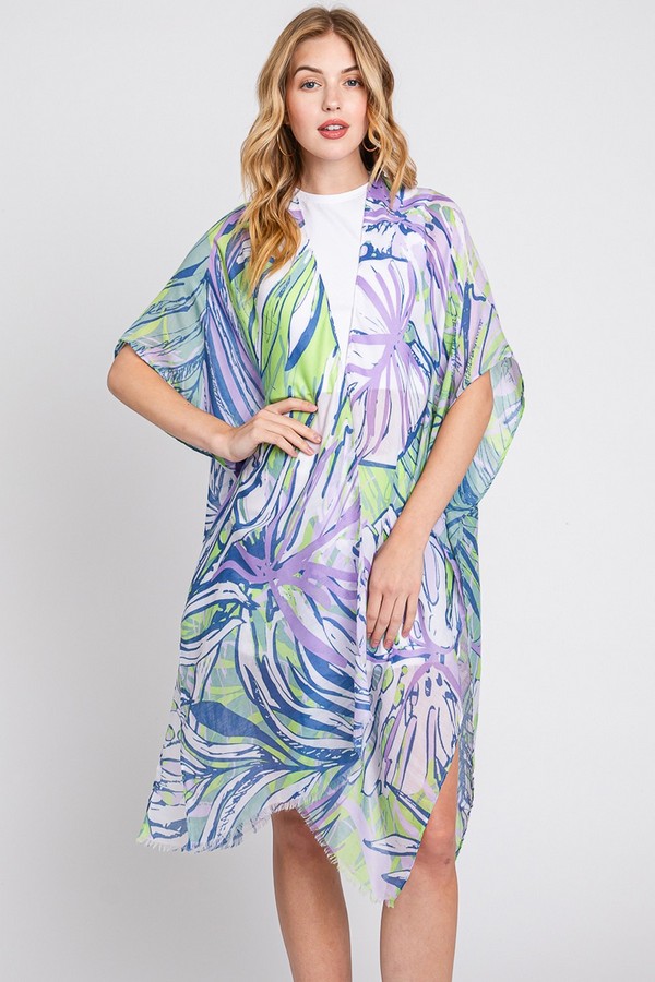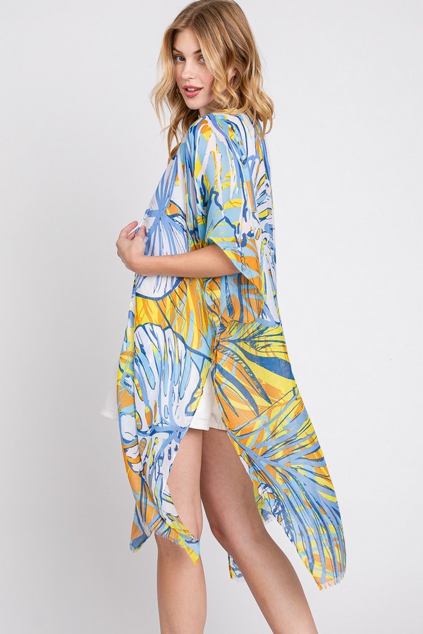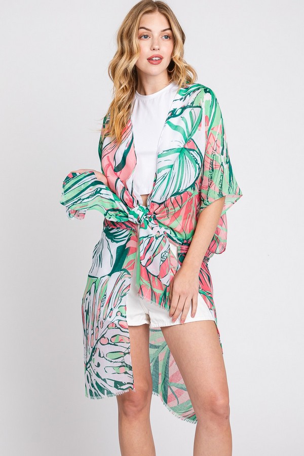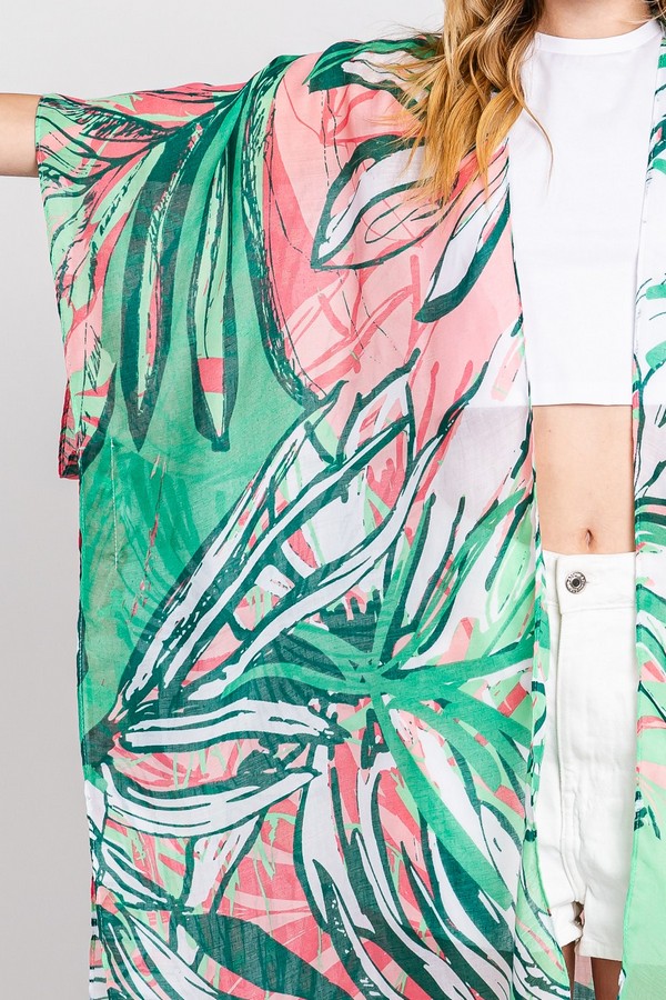 - * HAND DRAWN TROPICAL LEAVES KIMONO