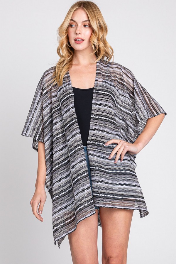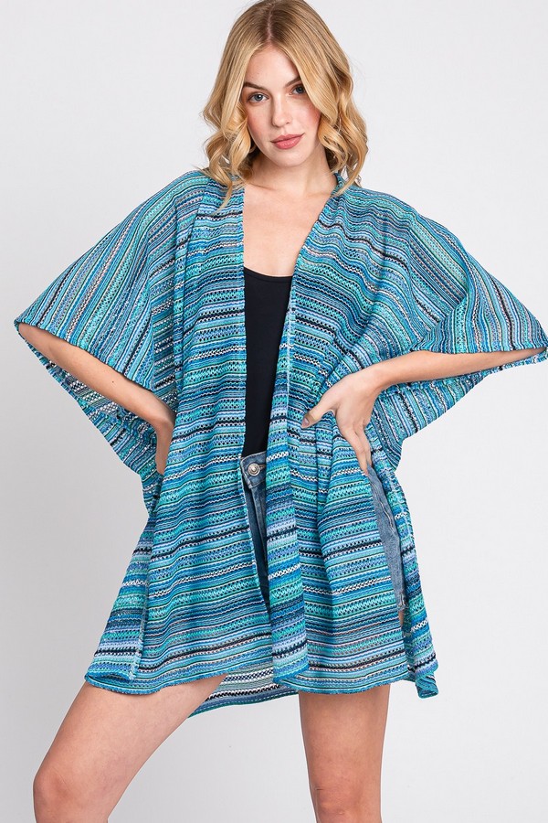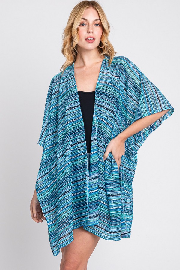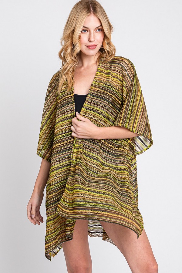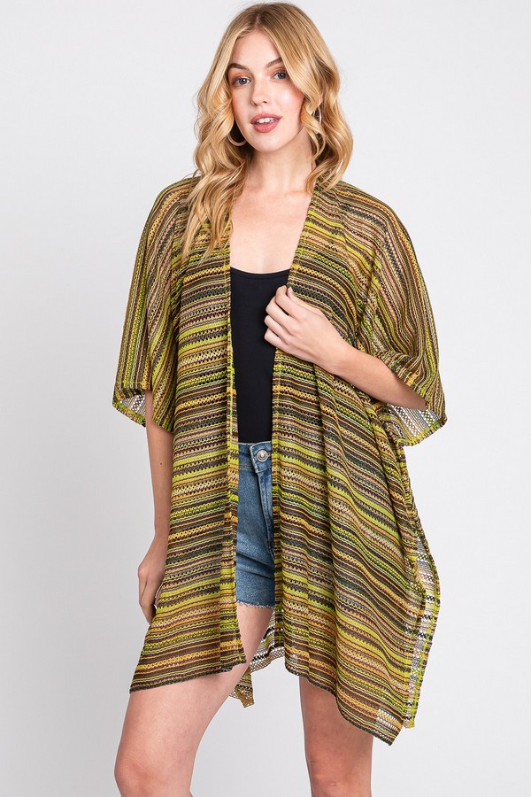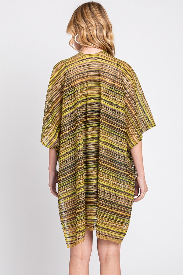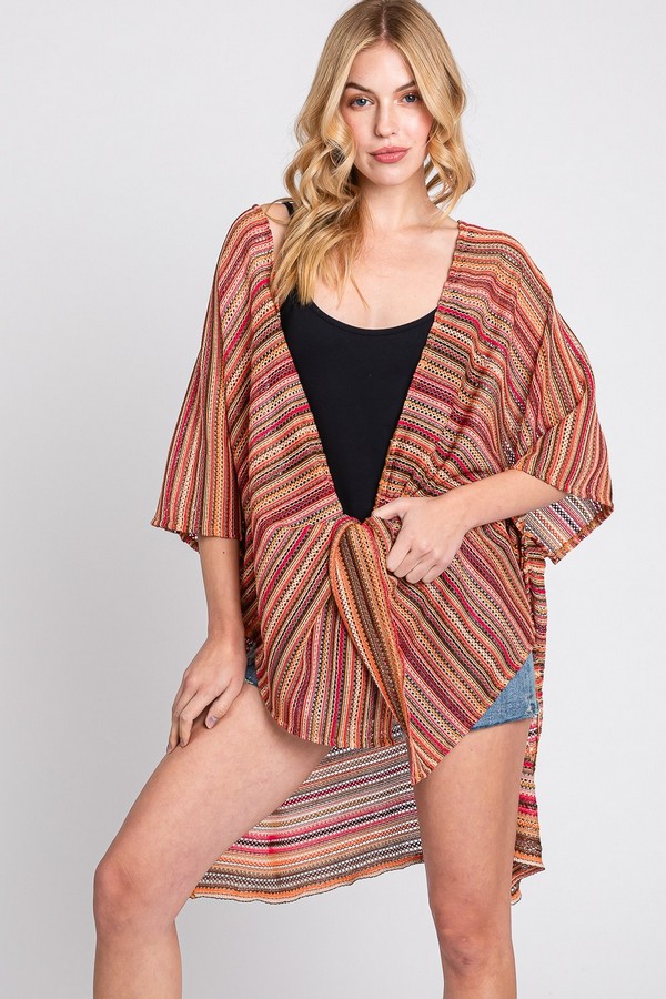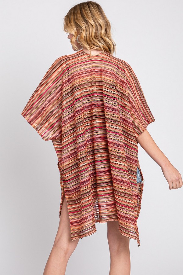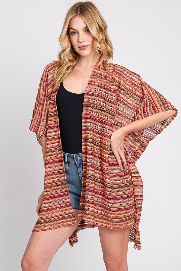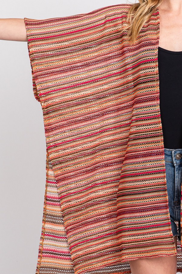 - * MULTI COLOR STRIPE CROCHET OPEN FRONT COVER-UP.