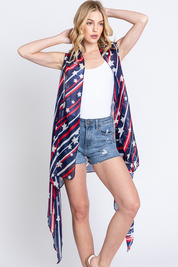 - * DIAGONAL STRIPES AND STARS PRINT VEST