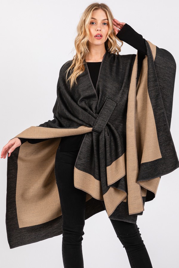 - * Introducing the "Two Tone Pull Through Shawl Ruana" from H&D Accessories - a stylish and cozy ponchle. Perfect for adding a pop of color to your outfit while staying warm and comfortable.