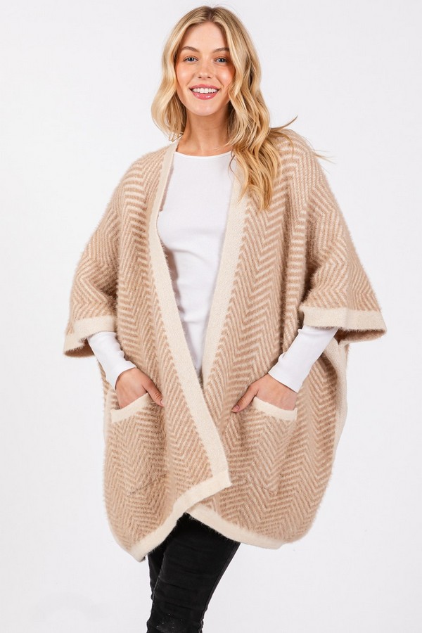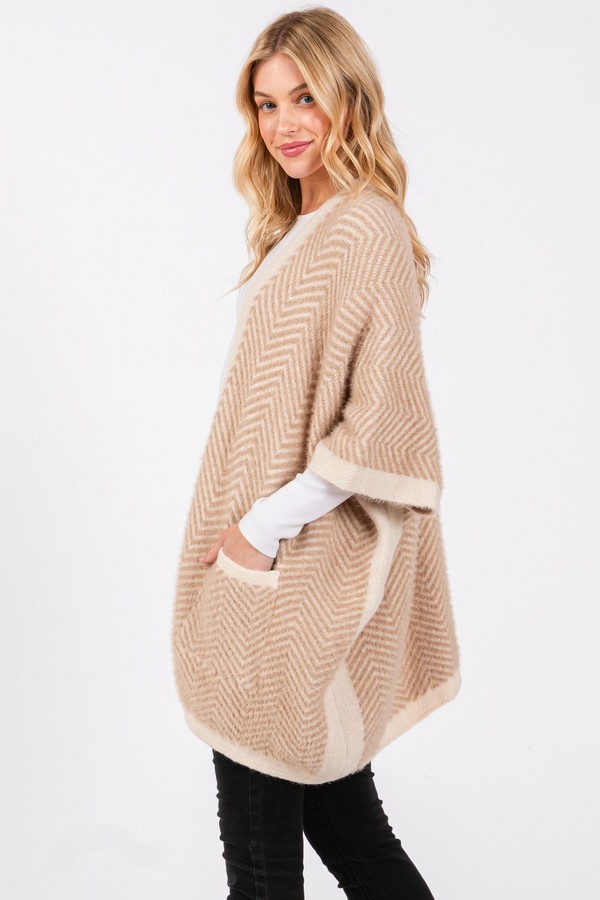 - * Introducing the Cozy Herringbone Wrap: Experience the ultimate blend of comfort and style with our soft, lightweight wool poncho. Designed with a long silhouette and featuring a unique fuzzy herringbone pattern, this versatile piece is perfect for layering. Elevate your wardrobe with the Cozy Herringbone Wrap and enjoy the warmth and elegance it brings to any outfit.