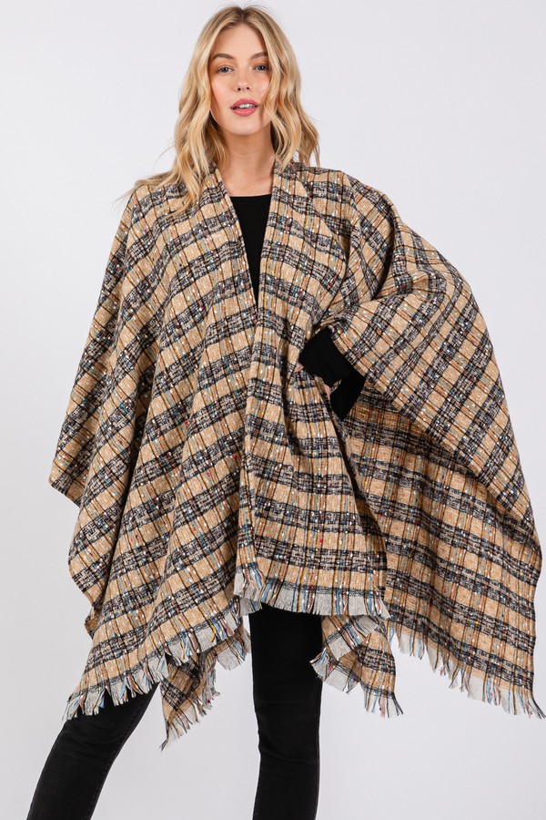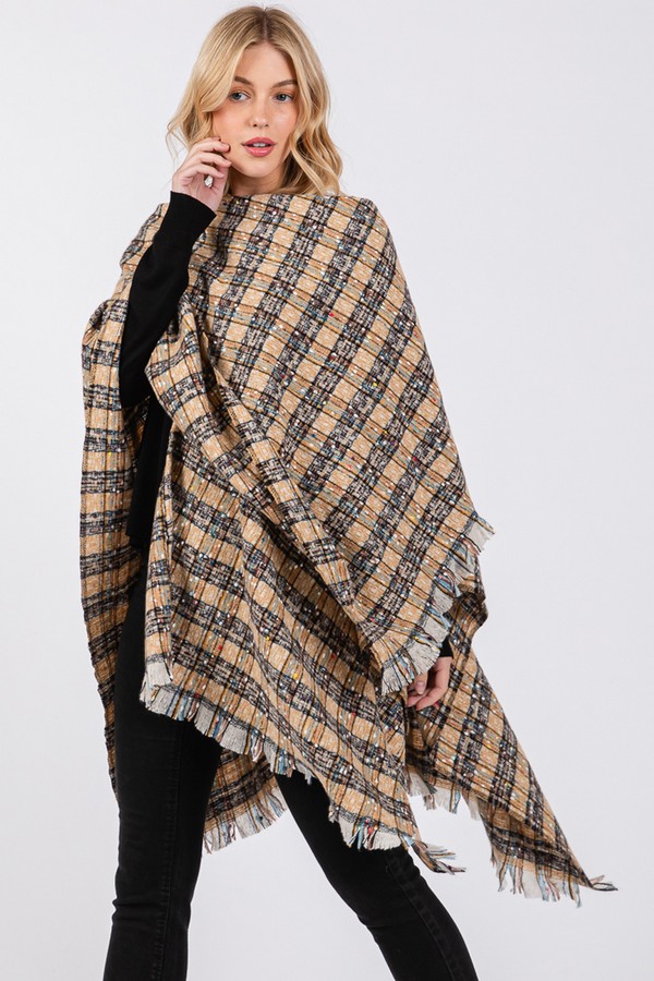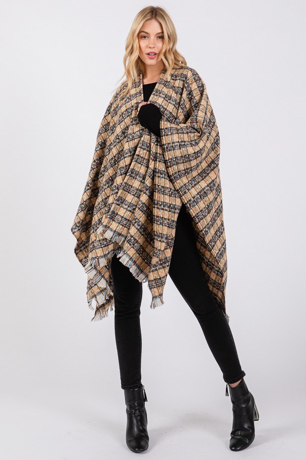 - * The Multi Color Plaid Pattern Ruana from H&D Accessories is a stylish and versatile piece. It features a classic plaid design that adds a touch of elegance to any outfit. Made with high - quality materials, it is soft and comfortable to wear. This ruana is perfect for casual outings or can be dressed up for more formal occasions. It drapes beautifully over the shoulders, providing both warmth and a fashion - forward look.