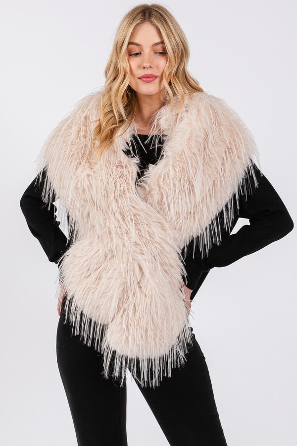 - * Introducing the Luxe Faux Fur Fringe Vest by H&D Accessories! Stay cozy and stylish with this chic faux fur vest featuring a long, shaggy fringe detail. Perfect for adding a touch of glamour to any outfit.