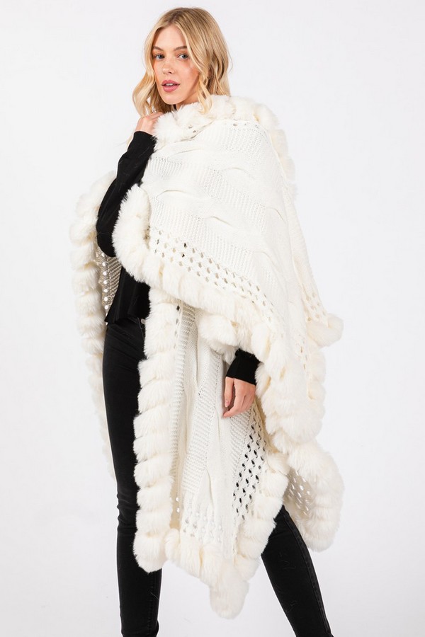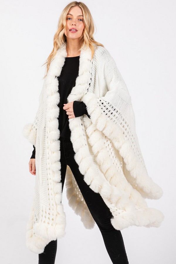 - * Presenting the "Chic Faux Fur Ponchle" - a sophisticated and cozy addition to your outfit. This cape features a long collar and faux fur trim, making it a must-have from H&D accessories.