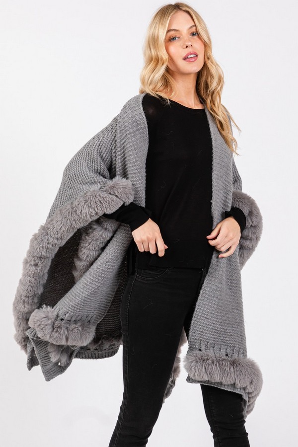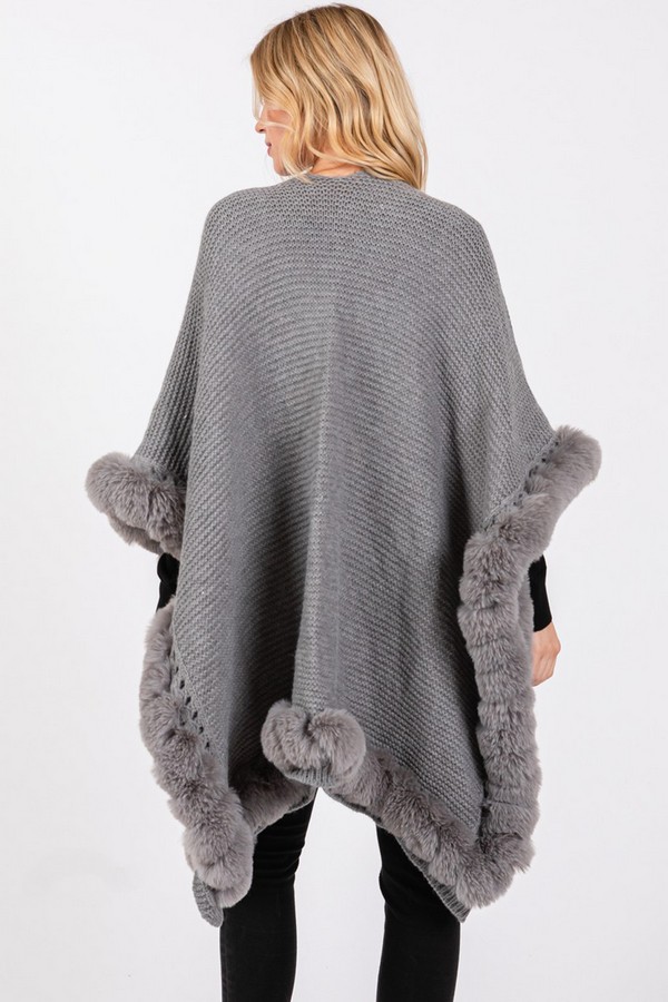 - * Faux Fur Trim Cape With Closure