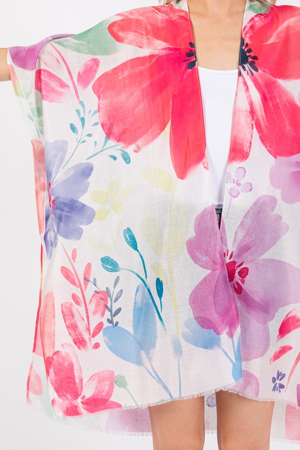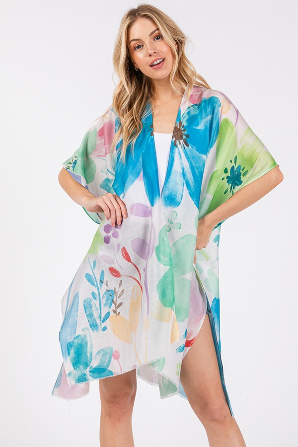- * Introducing the "Watercolor Flower Print Kimono" from H&D Accessories, where elegance meets artistry. This stunning piece features a captivating floral print that effortlessly transitions from long to short sleeves, making it the perfect addition to any wardrobe. Embrace the beauty of nature with every wear!
